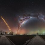 NASA(アメリカ航空宇宙局)のアルテミス2ミッションで打ち上げられるSLS(スペースローンチシステム)ロケットが射点(39B発射台)への移動を完了しました。高さ約98メートルのロケットの先端には、4人の宇宙飛行士が搭乗し月へ向かうオリオン(オライオン)宇宙船が取り付けられています。上の写真は39B発射台でライトアップされたSLSロケットです。