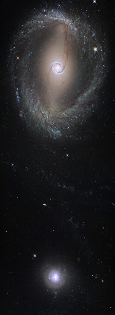銀河宇宙 相互作用する棒渦巻銀河と矮小銀河 ハッブル宇宙望遠鏡が撮影