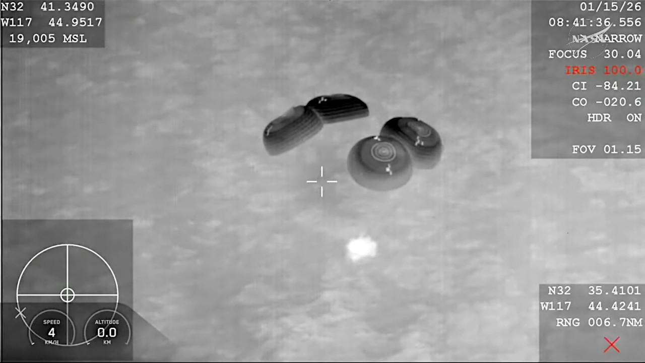 油井さんらクルー11(Crew 11)の4人の宇宙飛行士が搭乗したクルードラゴン宇宙船は、1月15日7時20分にISSを離脱。同日17時41分ごろにカリフォルニア沖の海上へ着水しました。