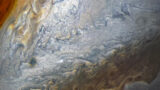 土星探査機カッシーニがとらえた土星の画像です。土星の北半球が映っており、北極の渦とそれを取り巻く六角形とともに、土星のリングも見えています。ジェット気流が作る六...