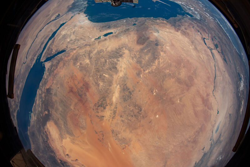 こちらは冒頭の動画の元になった画像の1枚です。8月26日8時30分ごろに撮影されました。画面に大きくアラビア半島の砂漠が映っており、左上にはシナイ半島や紅海、上には地中海が見えています。