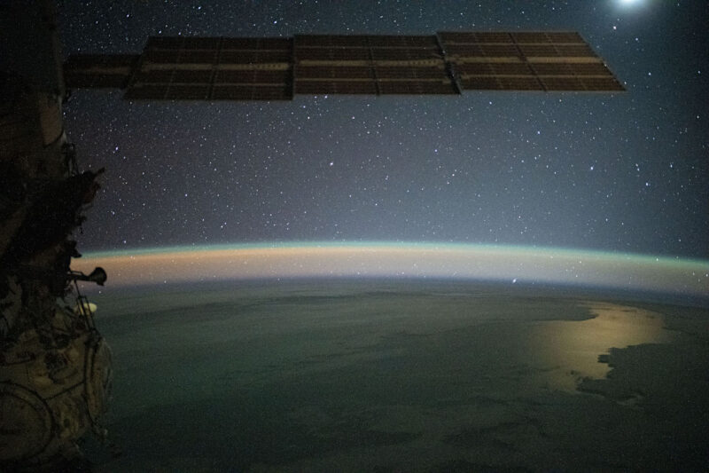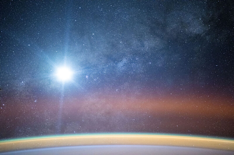2025年10月下旬にISS(国際宇宙ステーション)から撮影された星空の画像が、NASA(アメリカ航空宇宙局)から複数公開されました。冒頭の画像はそのうちの1枚で、2025年10月26日にアフリカ沖の大西洋上空から撮影されたものです。月が明るく輝き、天の川も見えています。