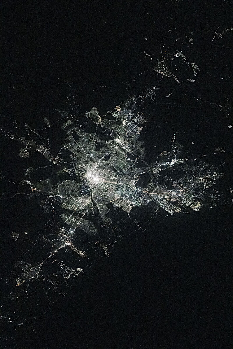 この画像はISS(国際宇宙ステーション)からとらえられたもので、宮城県の仙台周辺の夜景が映っています。2025年5月19日23時17分ごろに撮影されました。