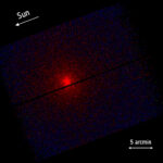 こちらの画像では、PAH(多環芳香族炭化水素)という、すすのような有機分子が赤で示されています。青は水素ガスからの赤外線。