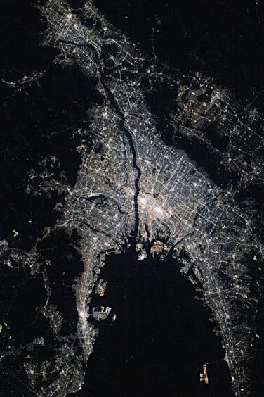 地球 ISS(国際宇宙ステーション)からみた東京湾周辺の夜景(2025年8月30日撮影) この画像はISS(国際宇宙ステーション)から撮影されたもので、東京湾周辺の夜景が映っています。2025年8月30日23時22分ごろ(日本時間)に撮影されました。... 2025.10.06 17:30 地球