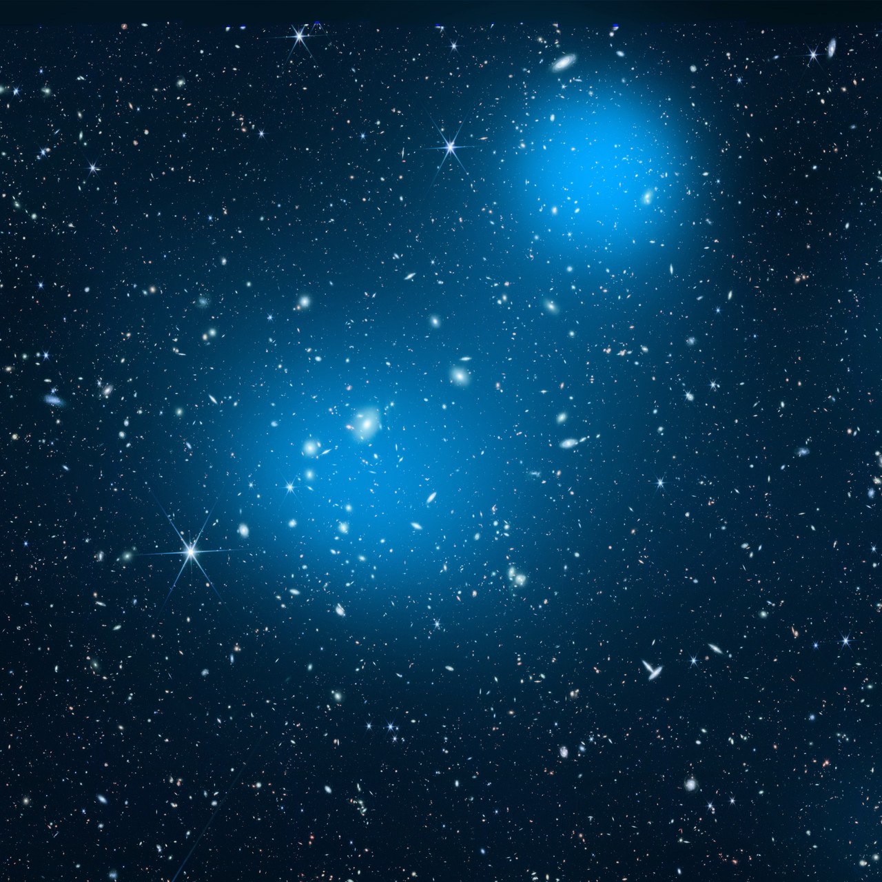 この画像、一見すると多くの星々が輝いているように見えるかもしれません。ただ実際に映っているのは、ほとんどが銀河です。画像はジェイムズ・ウェッブ宇宙望遠鏡がとらえたもので、約80万個の銀河が映し出されています。その銀河の画像に、青で示されたダークマター(暗黒物質)の分布の地図が重ねられています。